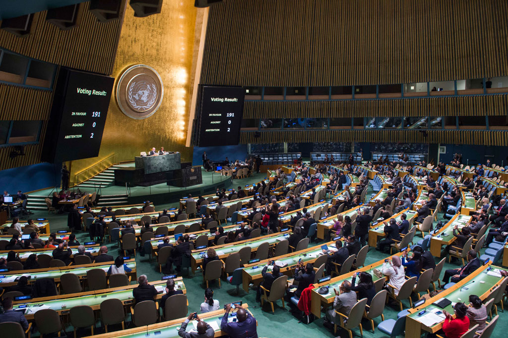 فيما صوتت 8 دول ضده وهي، إسرائيل والولايات المتحدة وميكرونيزيا والأرجنتين وباراغواي وباباوا غينيا الجديدة وبالاو وناورو.