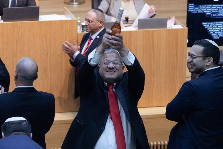 – حزب قوة يهودية (يمين متطرف): جميع نوابه الخمسة، وهم: إيتمار بن غفير (زعيم الحزب ووزير الأمن القومي)، وإسحاق فاسرلاوف، وليمور سون هار ميلخ، وتسفيكا فوغل، وإسحاق كرويزر.