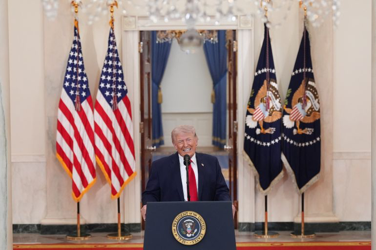 وأكد ترمب -في خطاب متلفز وجهه إلى الشعب الأمريكي من البيت الأبيض فجر الخميس- أن الولايات المتحدة ماضية في عملياتها العسكرية ضد إيران، مشددا على استمرار “عملية الغضب الملحمي” حتى تحقيق كامل الأهداف الأمريكية، في وقت اعتبر فيه أن الأهداف الإستراتيجية للحرب باتت قريبة من التحقق.