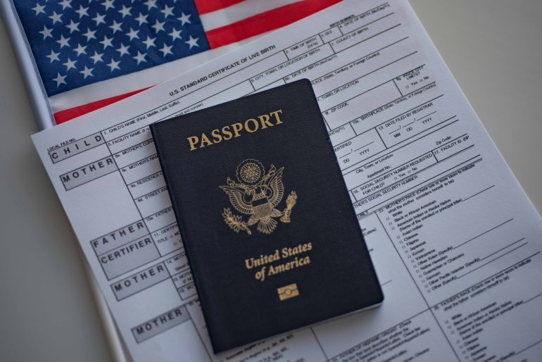 ويضمن التعديل رقم 14 لدستور الولايات المتحدة حق الحصول على الجنسية بالولادة. وينص بند الجنسية على أن “جميع الأشخاص المولودين أو المتجنسين بالولايات المتحدة، والخاضعين لولايتها القضائية هم مواطنون أمريكيون ومواطنو الولاية التي يقطنون فيها”.